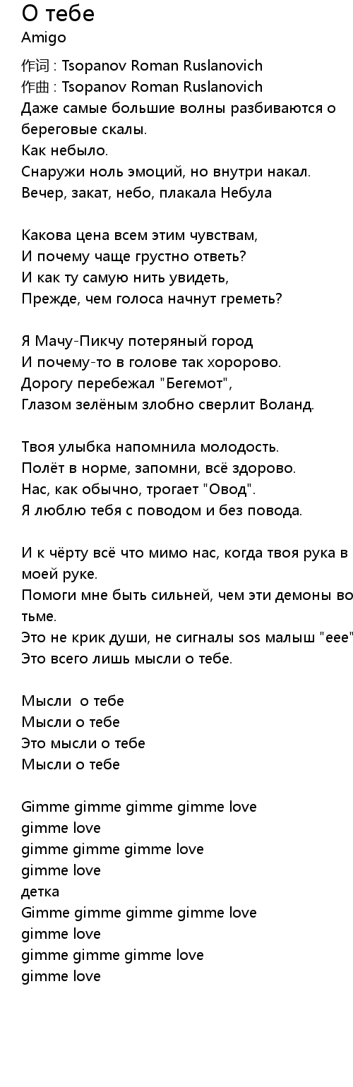 О тебе  Lyrics