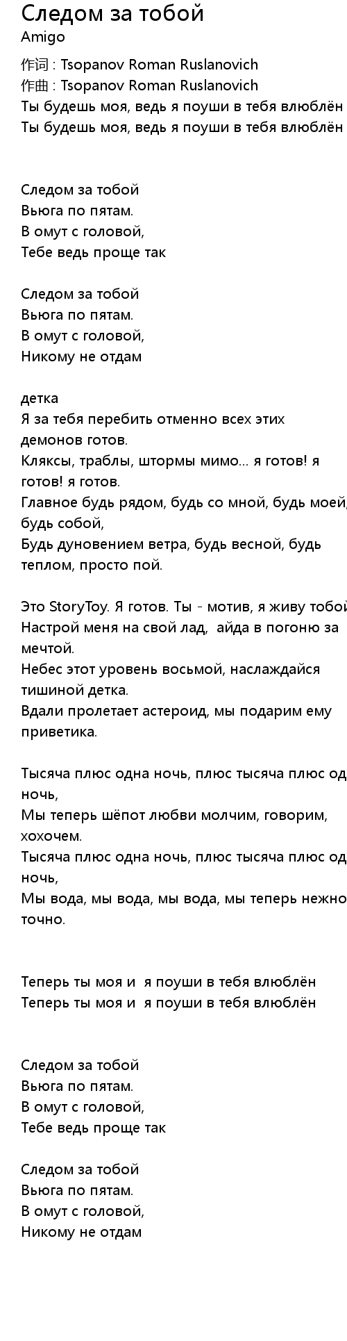 作词 : Tsopanov Roman Ruslanovich |