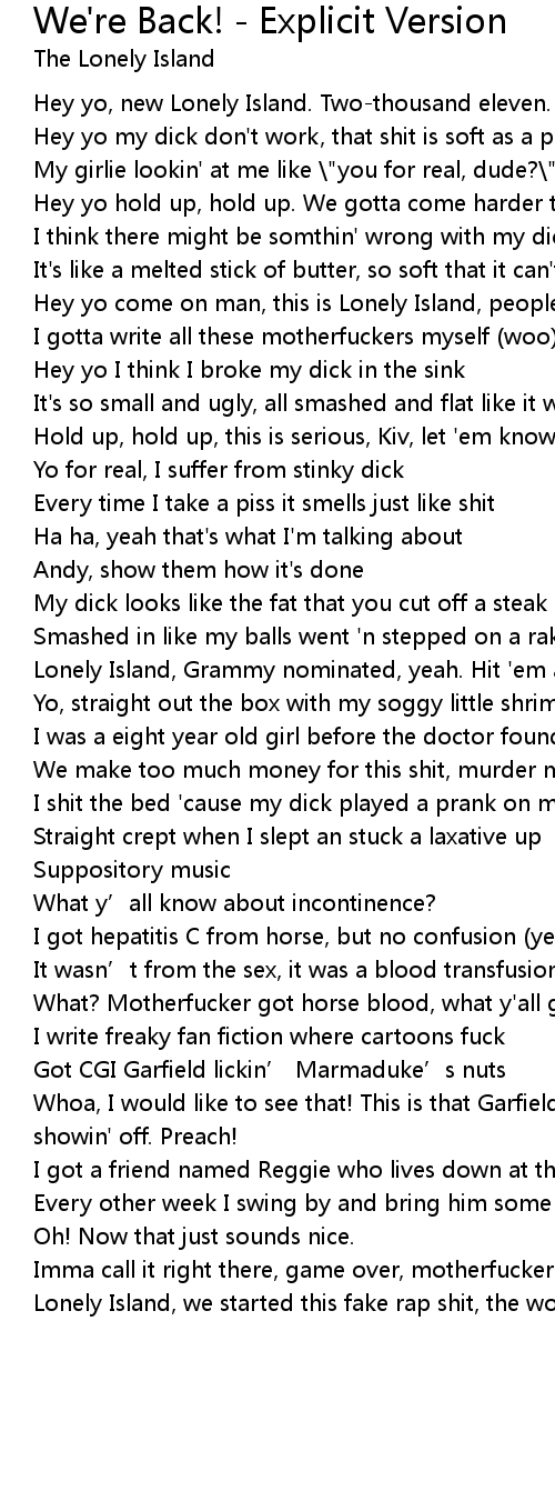 | Hey yo, new Lonely Island. Two-thousand eleven. Let's get 'em Kiv! | |