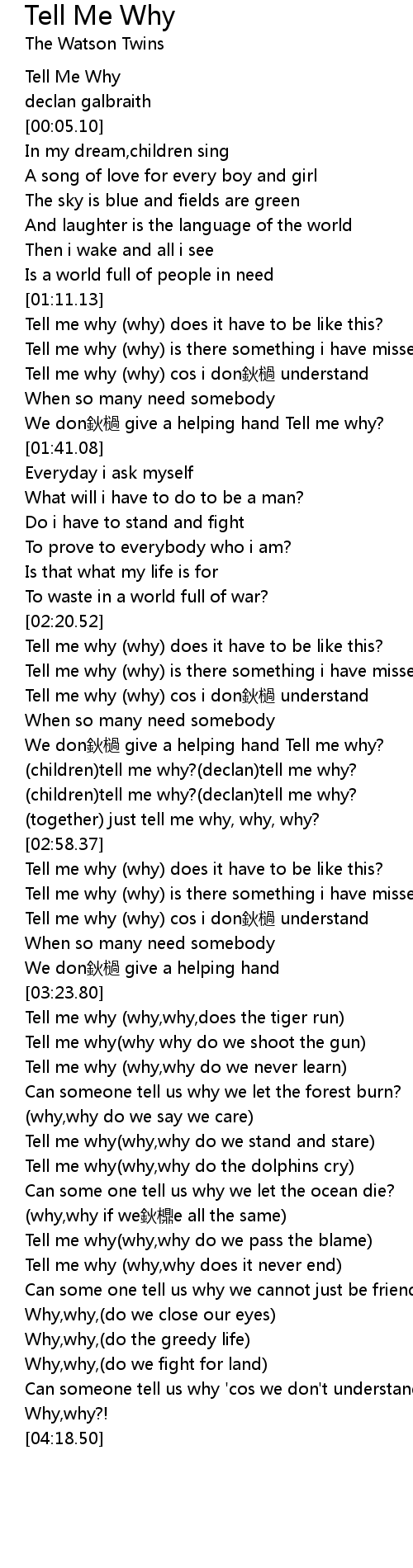| [02:55.71] | (together) just tell me why, why, why? |