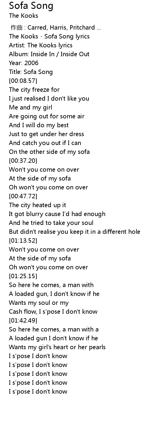 | [00:00.00] | The Kooks - Sofa Song lyrics |