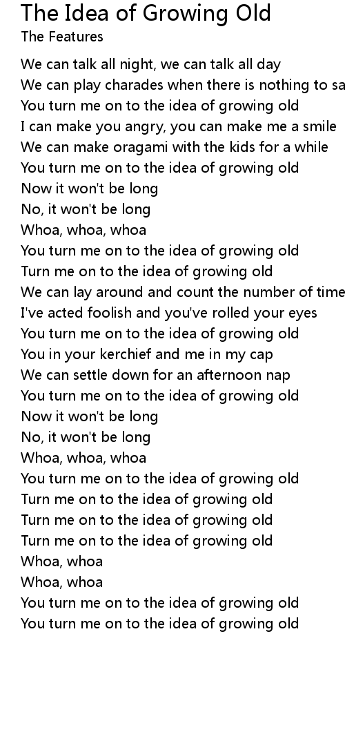 Turn me on to the idea of growing old |