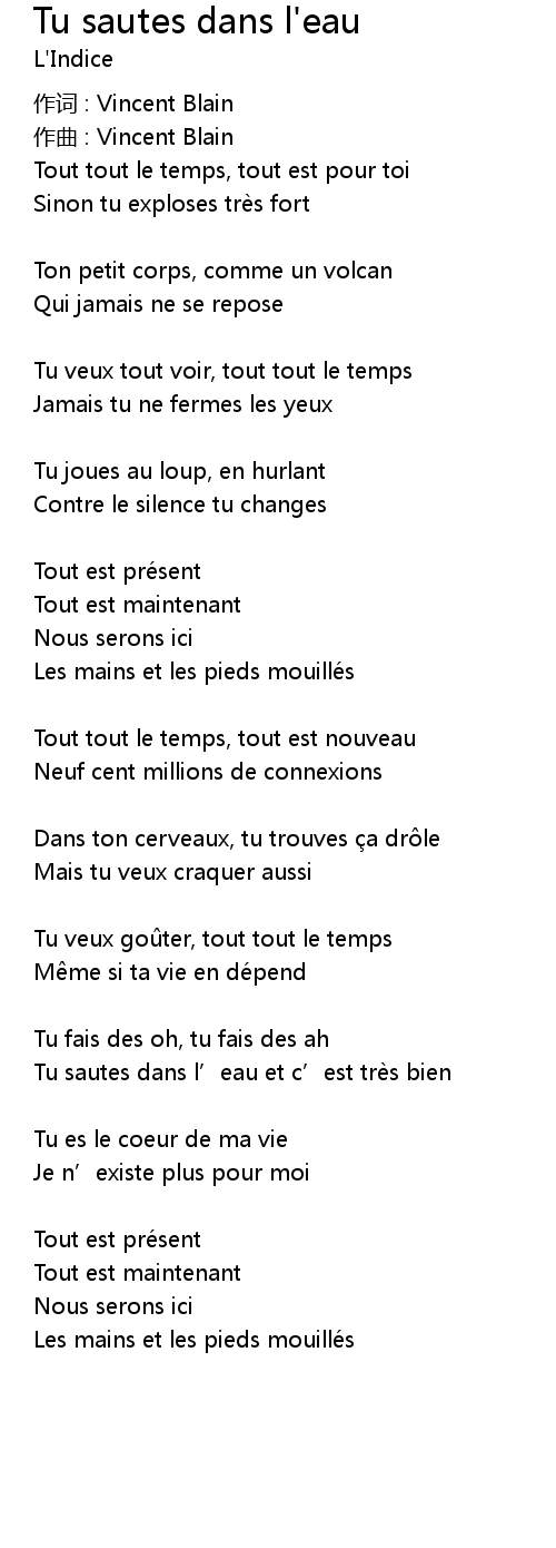 | Song | Tu sautes dans l'eau |