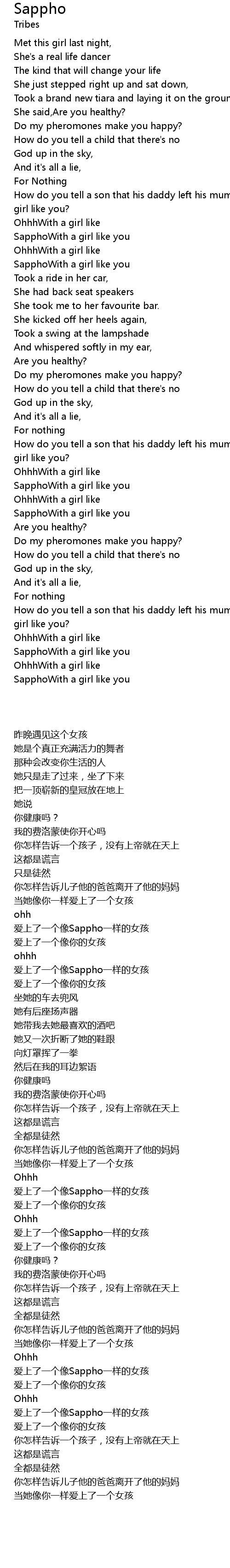 | How do you tell a son that his daddy left his mum when she fell in love with a girl like you? | |