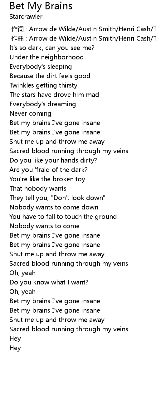 | [02:46.99] | Bet my brains I' ve gone insane |