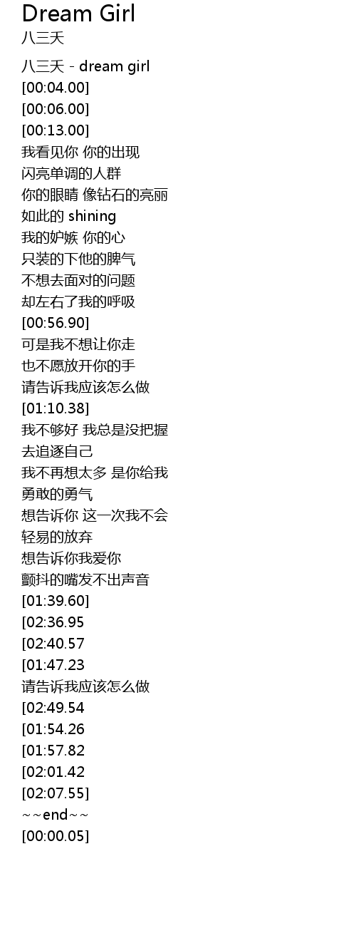 | [00:02.00] | 八三夭 - dream girl |