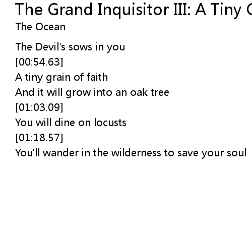 | Song | The Grand Inquisitor III: A Tiny Grain of Faith |