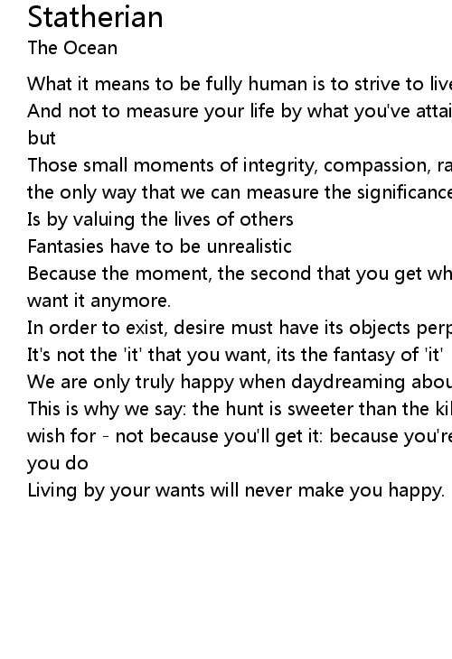 Because the moment, the second that you get what you seek, you don't, you can't want it anymore. |