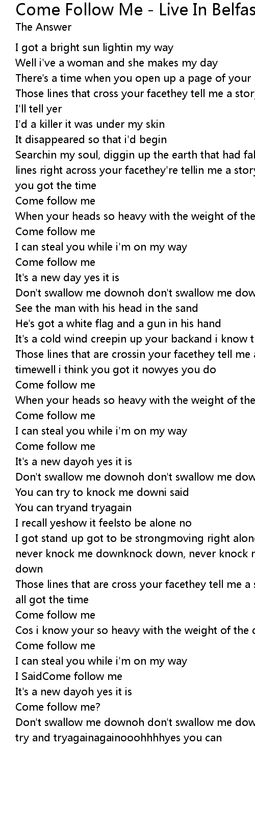 Come Follow Me - Live In Belfast Lyrics