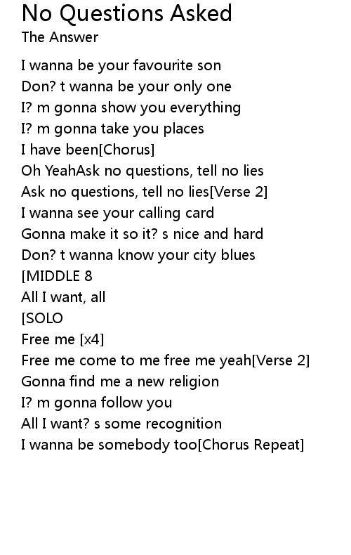 No Questions Asked Lyrics