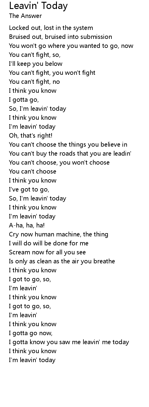 I'm leavin' today |