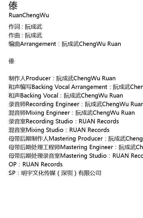 | 制作人Producer:阮成武ChengWu Ruan | |