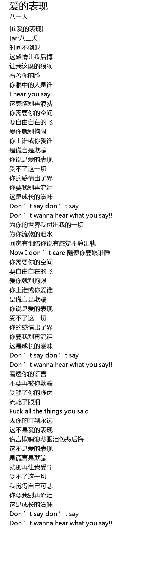 | [02:03.188] | 你说是爱的表现 |