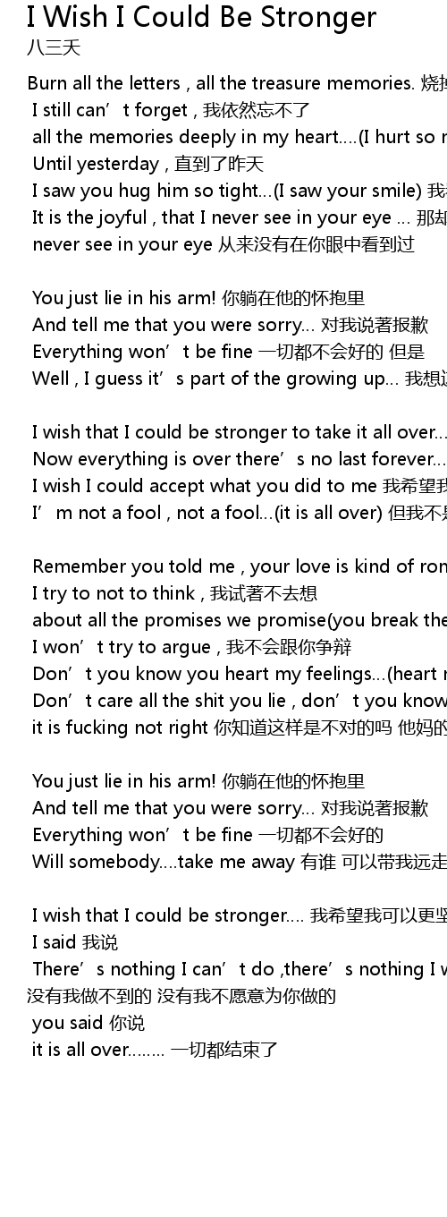 | I wish that I could be stronger…. 我希望我可以更坚强 | |
