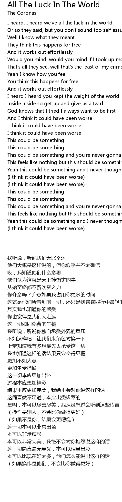 I heard, I heard we've all the luck in the world |