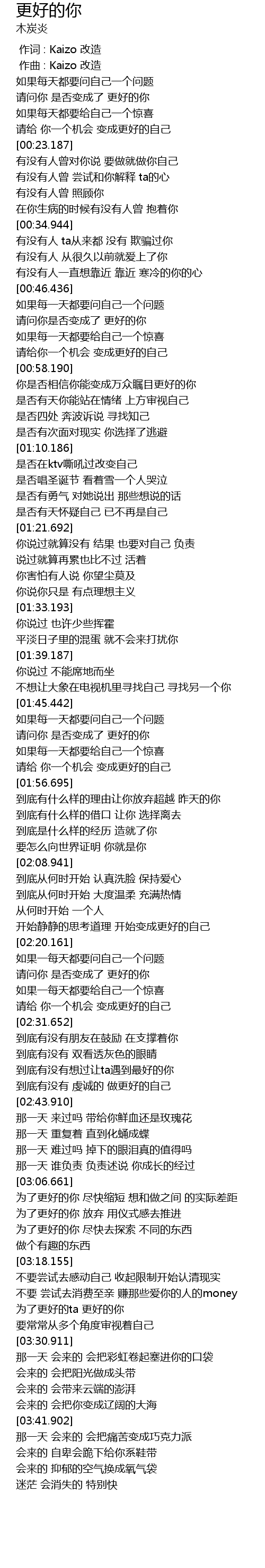 | [00:14.193] | 请问你 是否变成了 更好的你 |