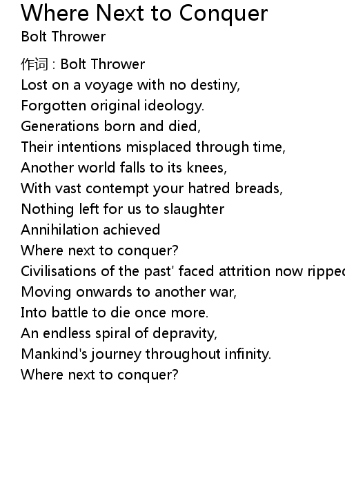 | Song | Where Next to Conquer |
