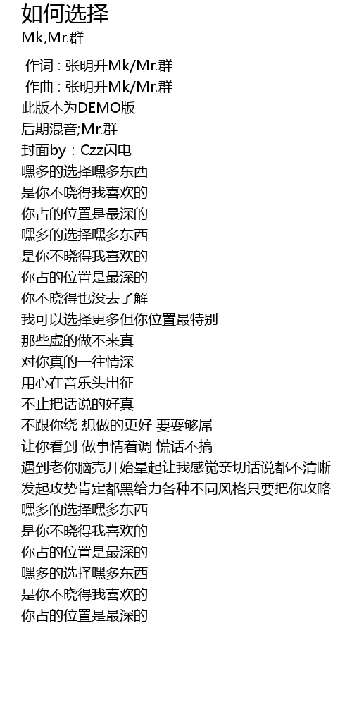 | [00:00.00] | 作词 : 张明升Mk/Mr.群 |