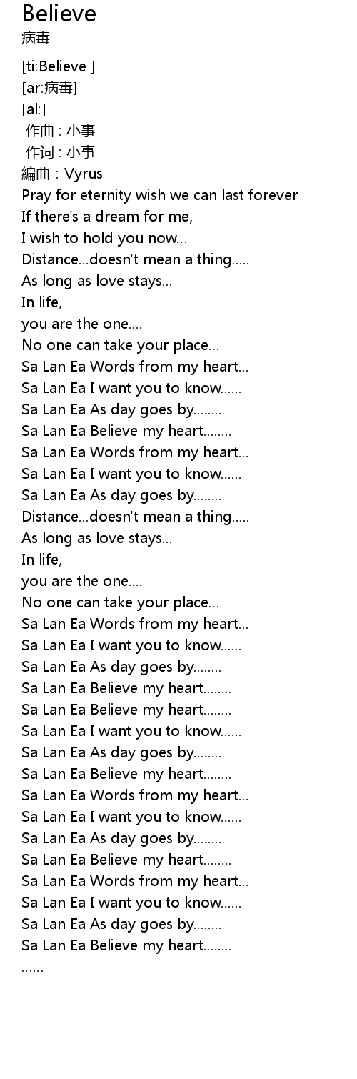| [01:34.91] | Sa Lan Ea Believe my heart........ |