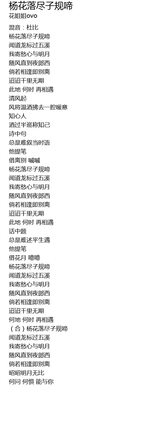 | [03:04.452] | (合)杨花落尽子规啼 |