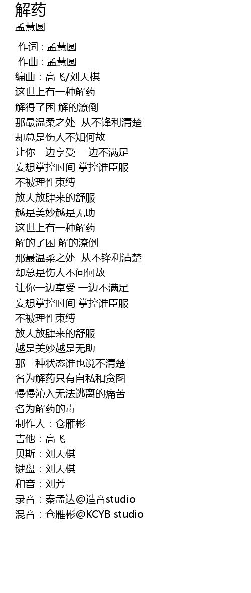 | [00:01.000] | 作曲 : 孟慧圆 |