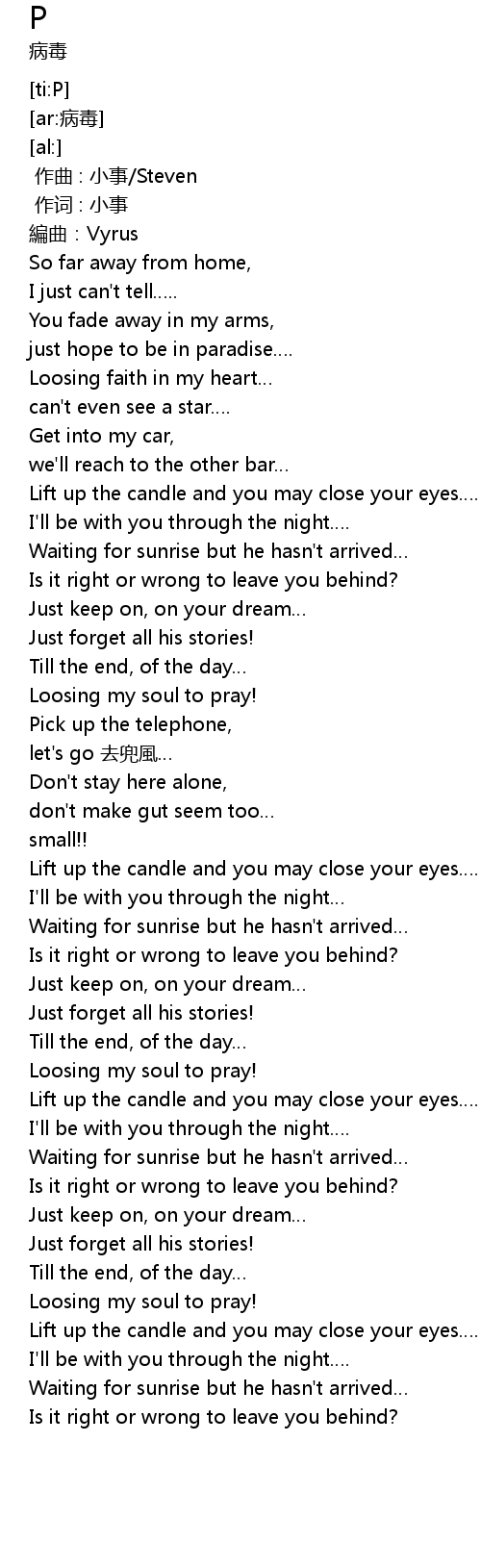 | [02:54.76] | Waiting for sunrise but he hasn' t arrived |