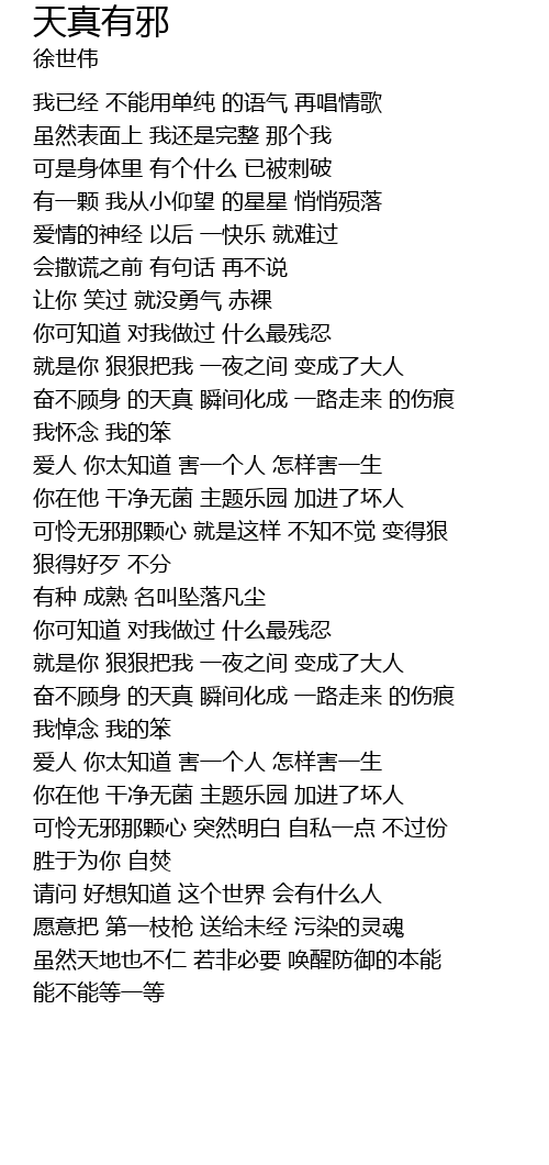 | [04:15.418] | 可怜无邪那颗心 突然明白 自私一点 不过份 |