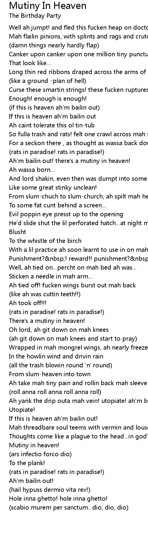 Well ah jumpt! and fled this fucken heap on doctored wings |