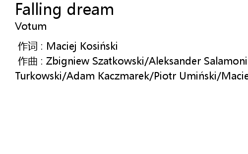 | [00:00.00-1] | zuò qǔ : Zbigniew Szatkowski Aleksander Salamonik Bartosz Turkowski Adam Kaczmarek Piotr Umi ski Maciej Kosi ski |