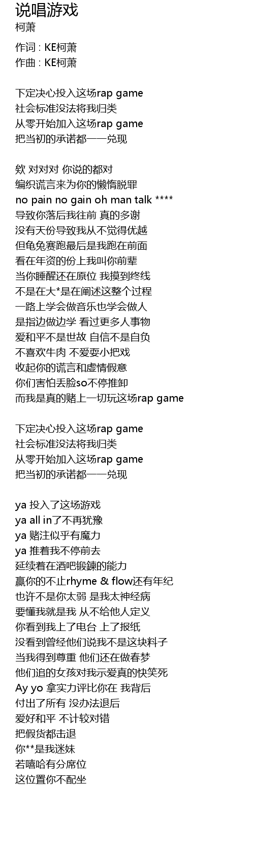 | cóng líng kāi shǐ jiā rù zhè chǎng rap game | |