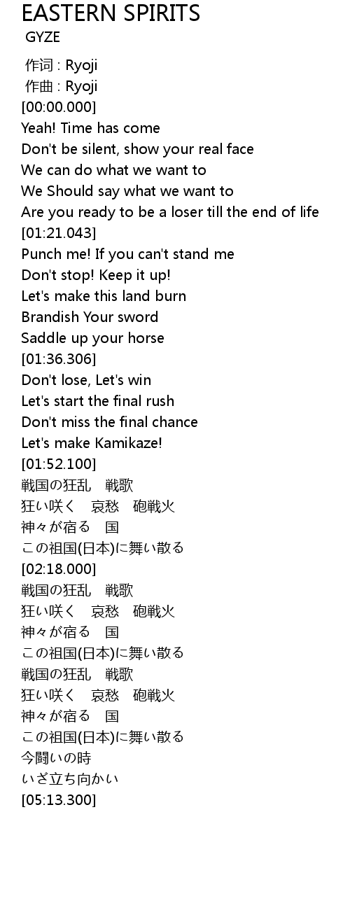 | Song | EASTERN SPIRITS |