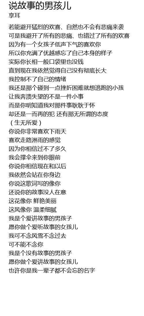 | [01:25.109] | 我是个爱讲故事的男孩子 |