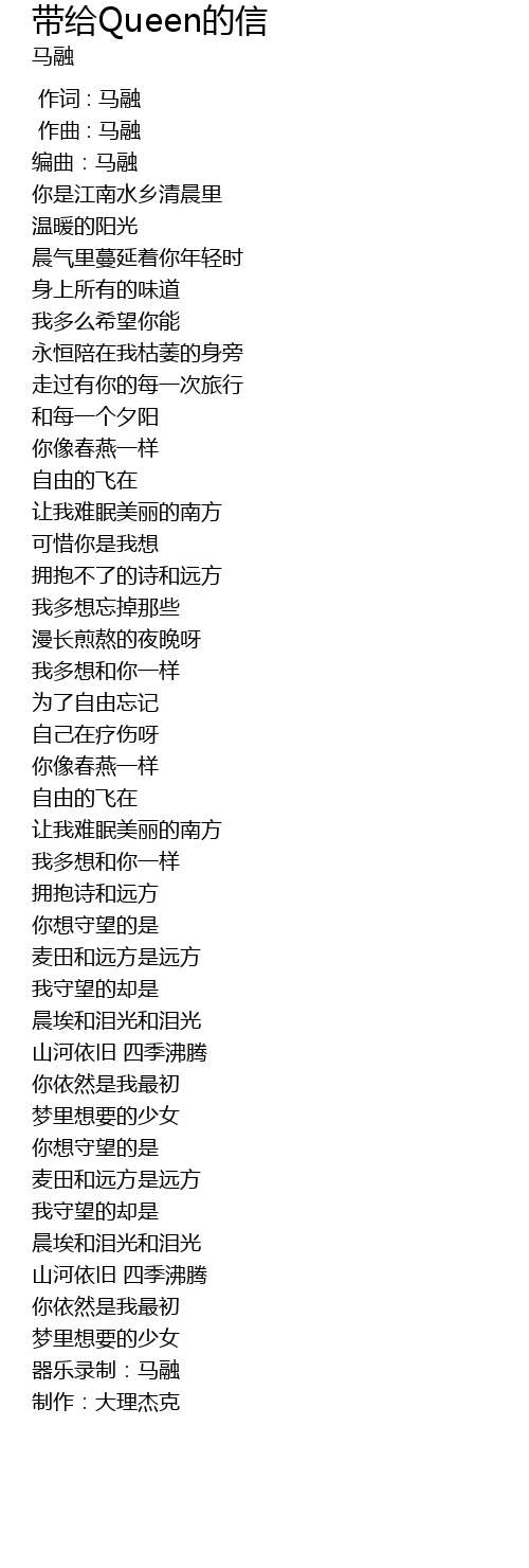 | [00:03.421] | 编曲:马融 |