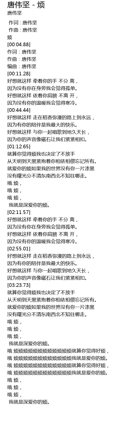 | [04:30.60] | 哦 烦烦烦烦烦烦烦烦烦烦烦烦我就是爱你的烦。 |