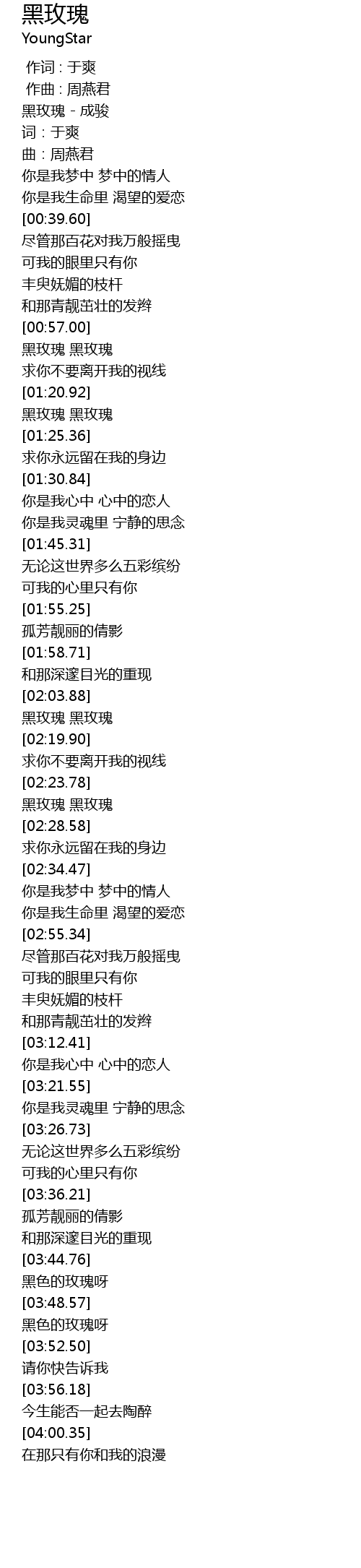 | [02:16.71] | 黑玫瑰 黑玫瑰 |