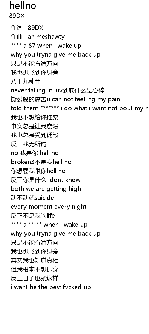 | [01:06.212] | 你想要我跟你hell no |