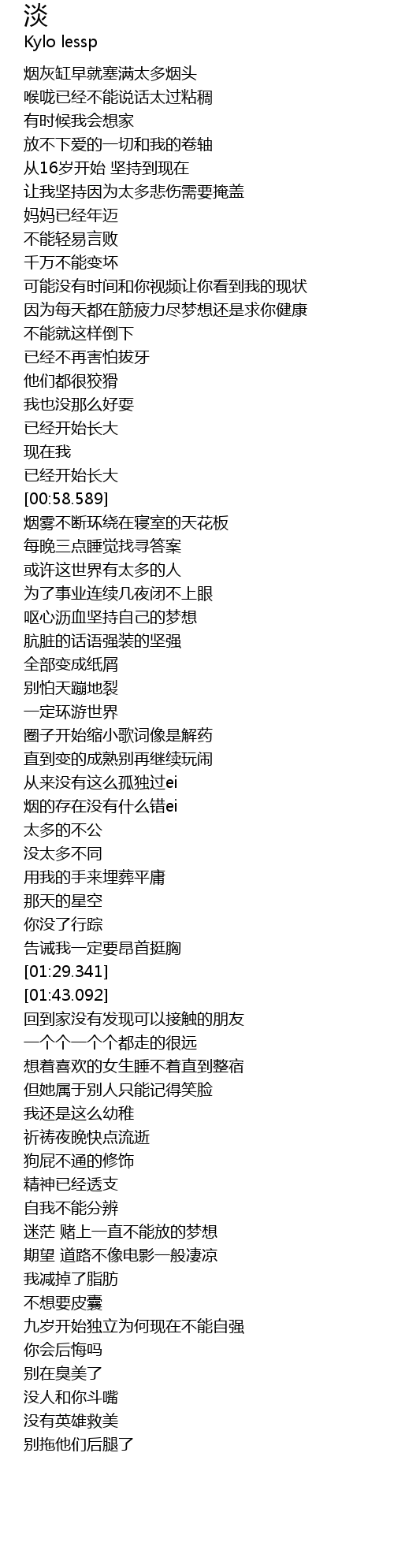 | [00:14.591] | yān huī gāng zǎo jiù sāi mǎn tài duō yān tóu |