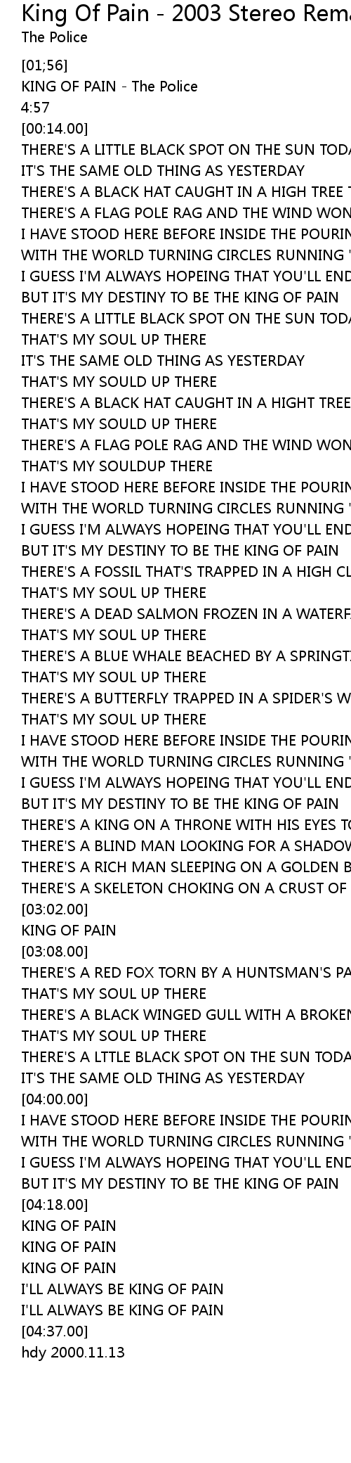 BUT IT'S MY DESTINY TO BE THE KING OF PAIN |