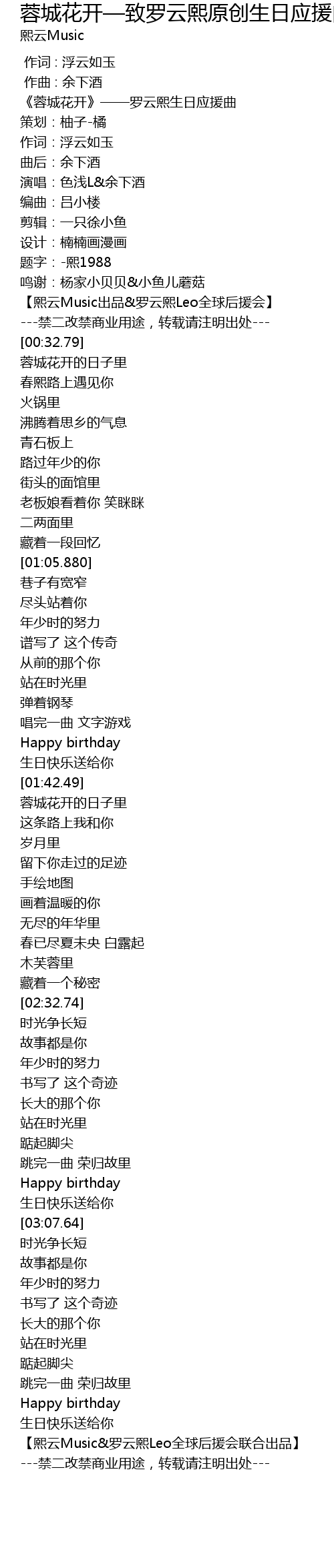 | [00:05.530] | 《蓉城花开》——罗云熙生日应援曲 |