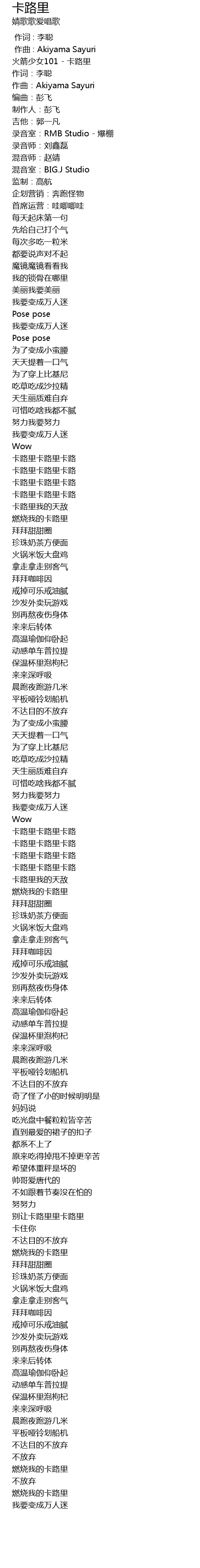 | [00:01.688] | 火箭少女101 - 卡路里 |