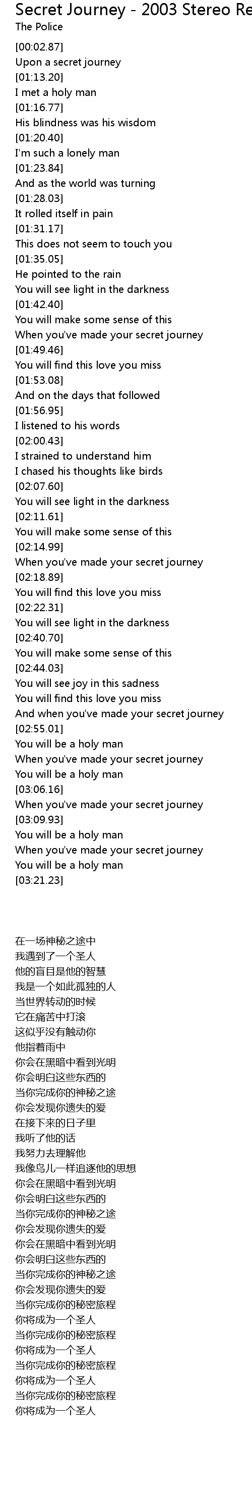 Secret Journey - 2003 Stereo Remastered Version Lyrics