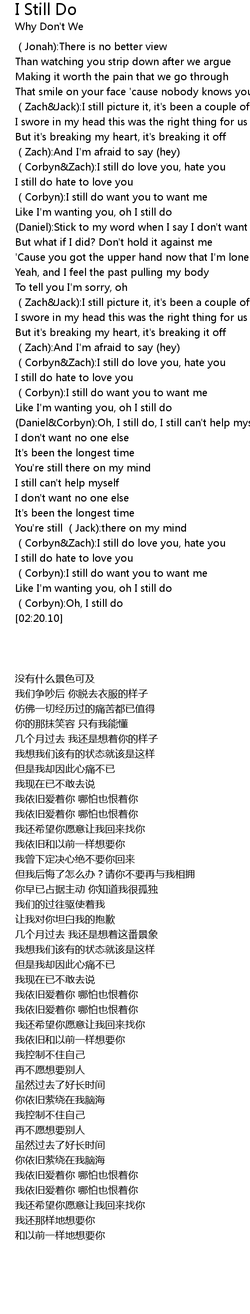 | [02:01.55] | (Corbyn&Zach):I still do love you, hate you |