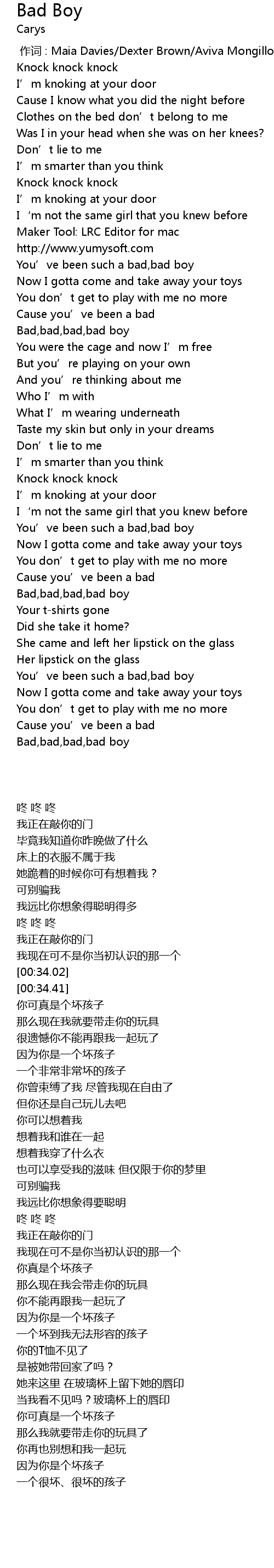 | [02:23.93] | Bad, bad, bad, bad boy |