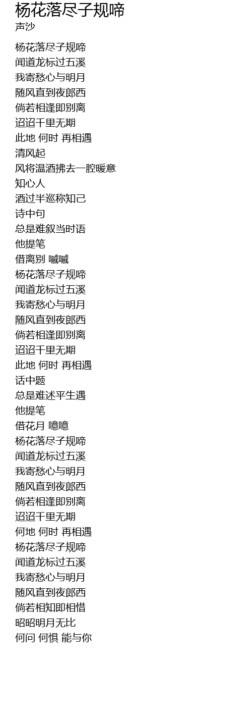| [03:04.11] | yáng huā luò jǐn zǐ guī tí |