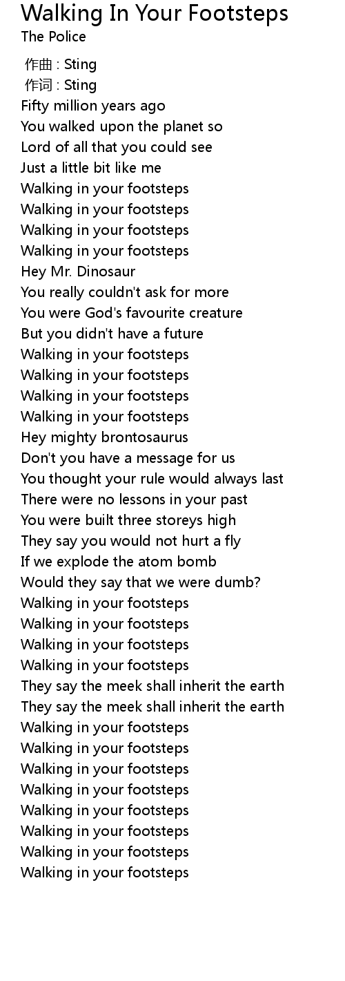 | Song | Walking In Your Footsteps |