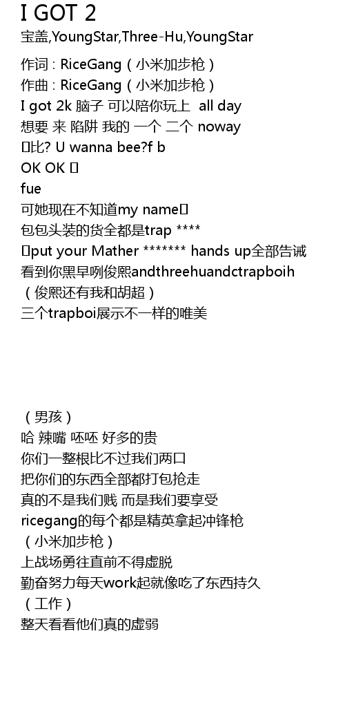 | 作词 : RiceGang(小米加步枪) | |