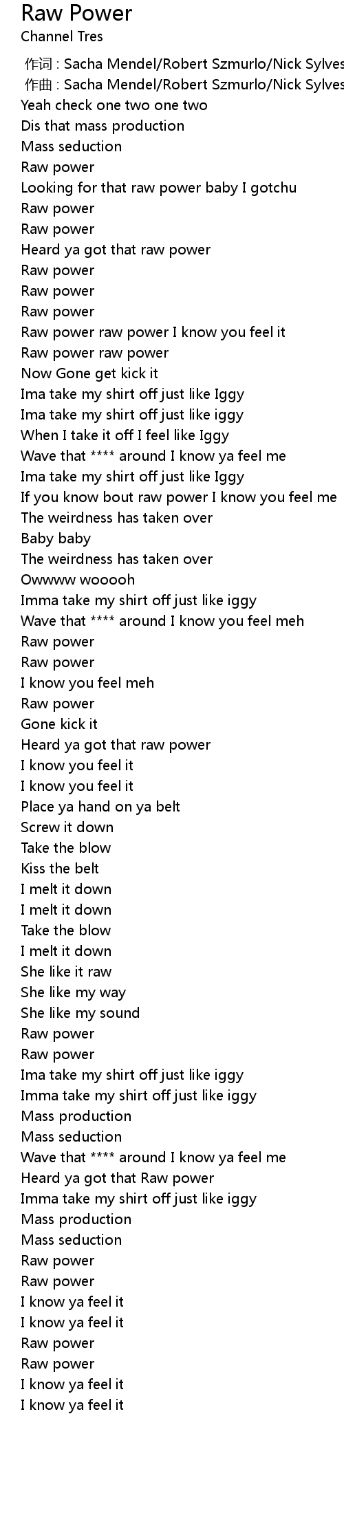 | [00:57.937] | Raw power raw power I know you feel it |