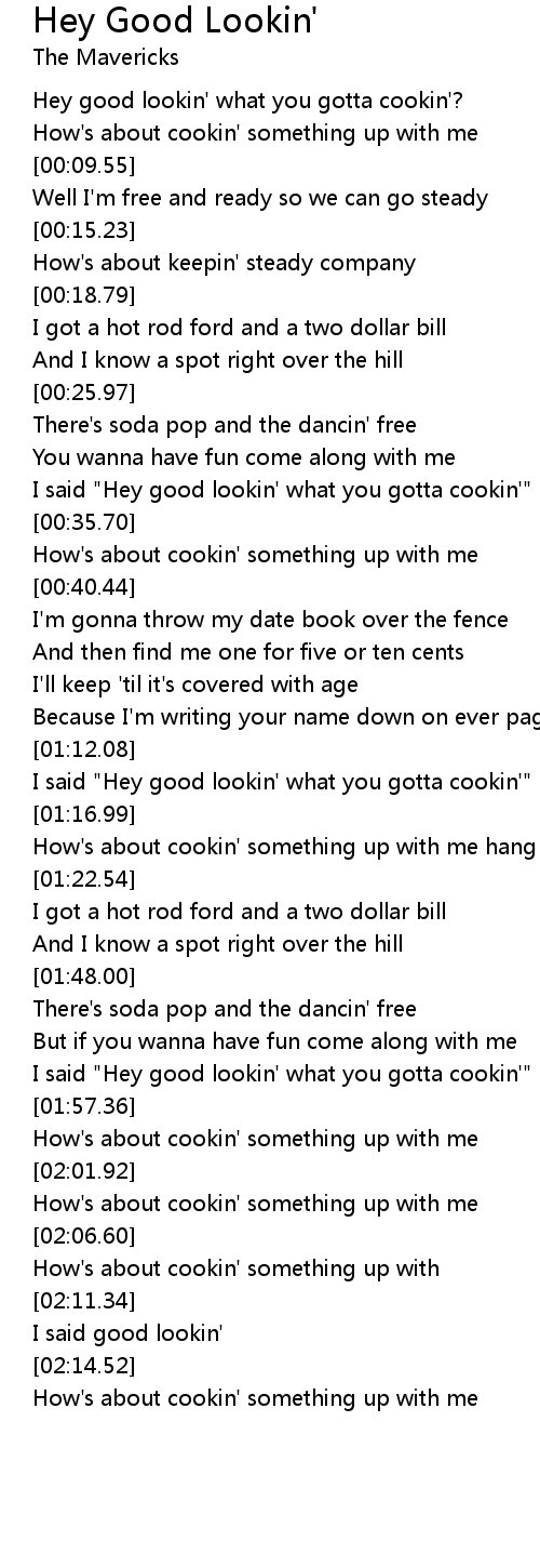 [00:01.00] Hey good lookin' what you gotta cookin'?