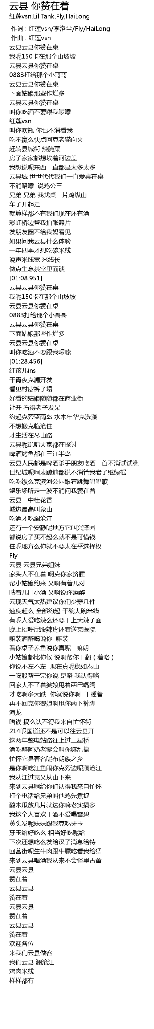 | [01:40.949] | yún xiàn ne shuō chàng dà jiā dōu zài tàn tǎo |
