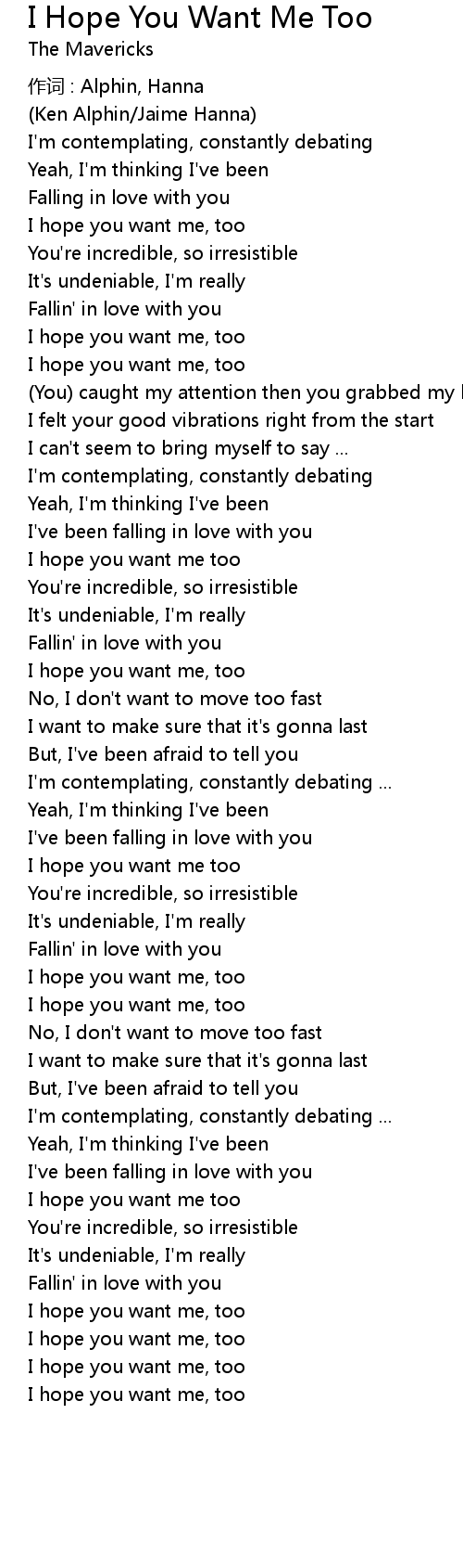 | I hope you want me, too |